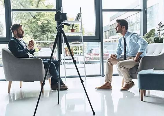 Ustal miejsce, datę i godzinę spotkania lub nagrania. Jeśli rozmowa ma odbyć się u Ciebie w przedsiębiorstwie, przygotuj odpowiednie tło –