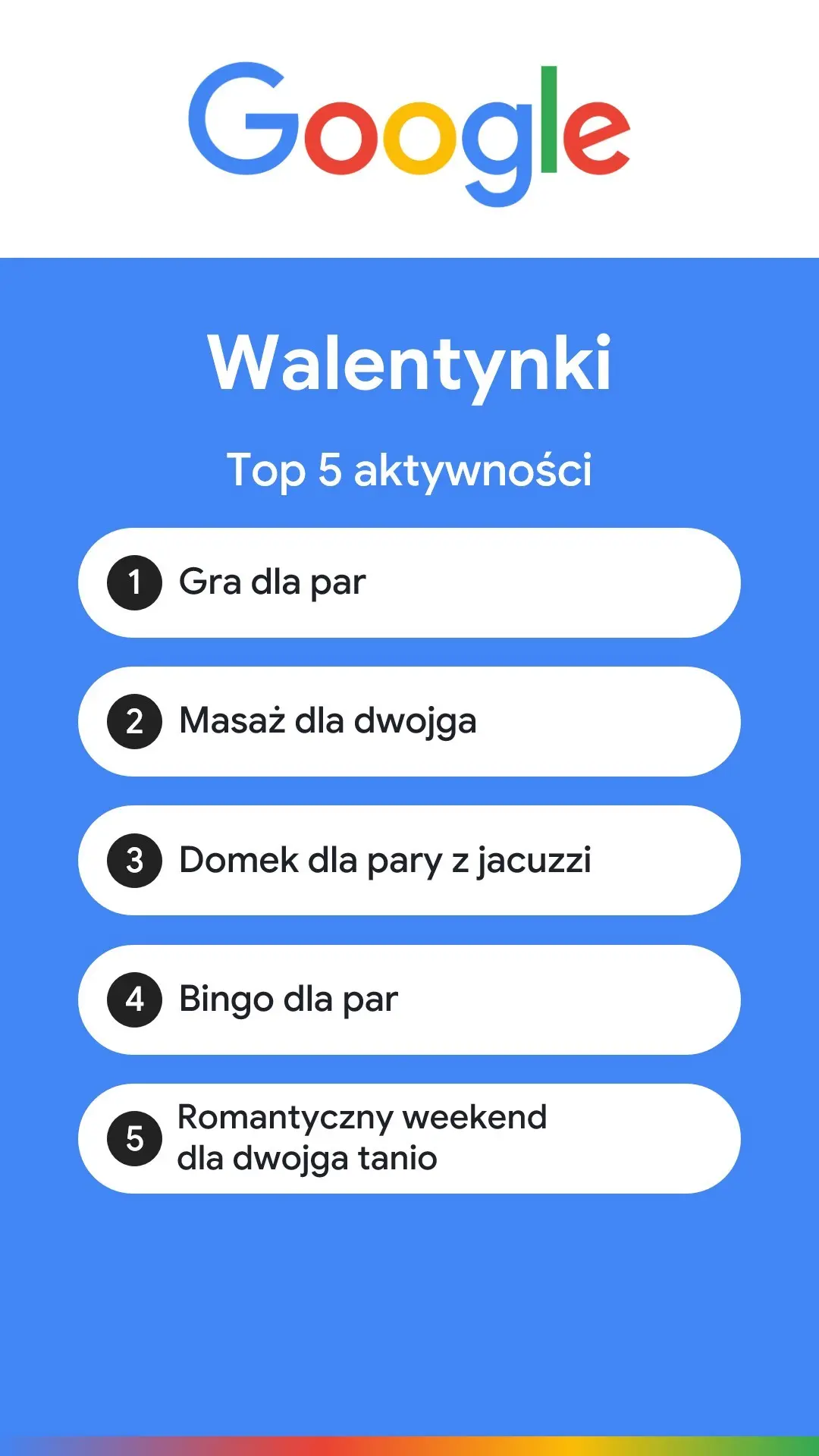 5 topowych aktywności walentynkowych według wyszukiwań w Google.